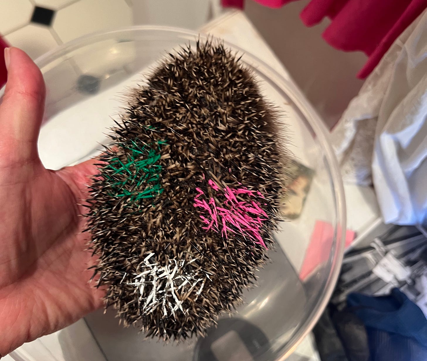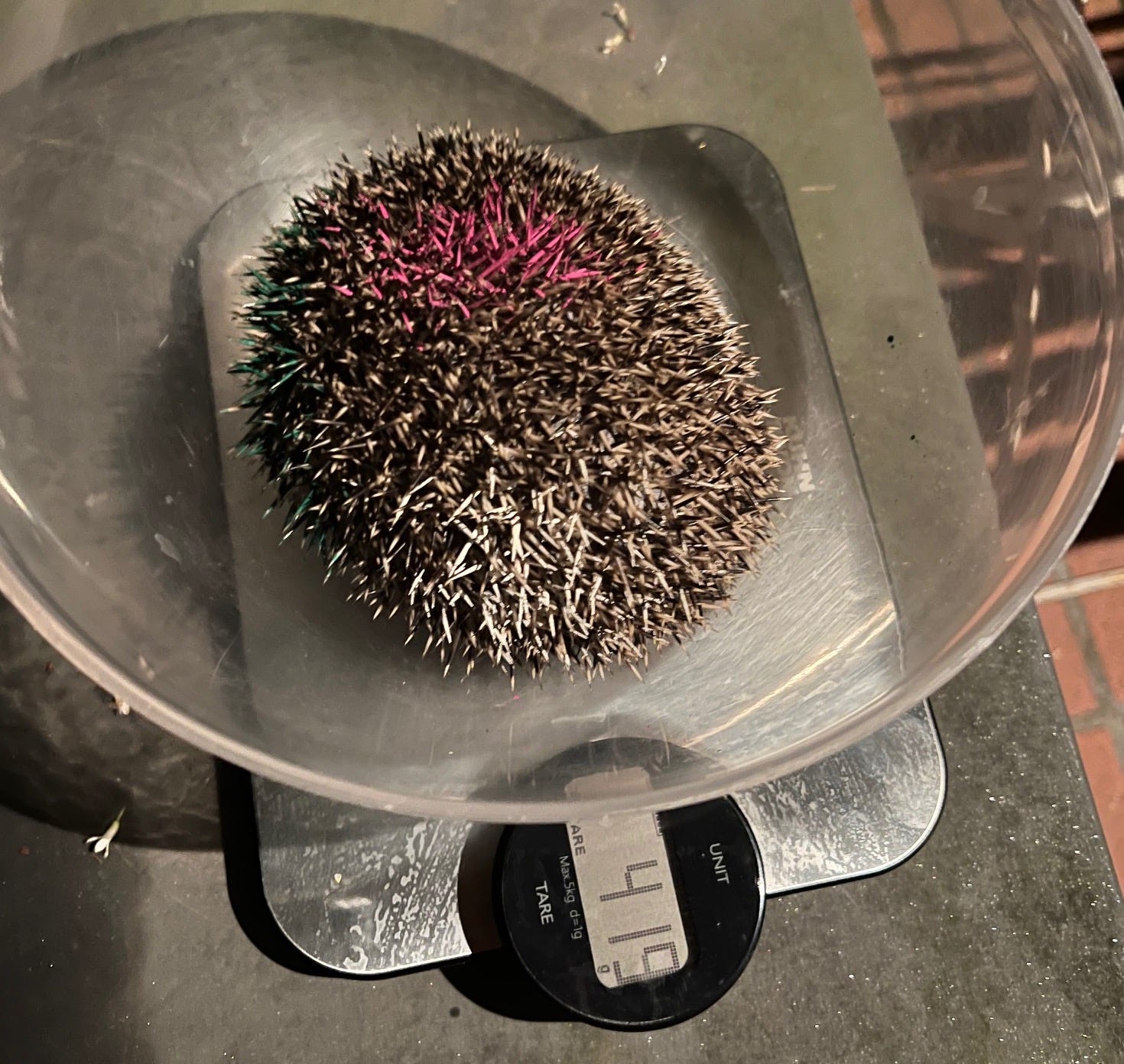 Non mi piace tenere i ricci “prigionieri”, anche quando lo faccio con le migliori intenzioni. In questo caso per farla aumentare di peso. Ho osservato questa riccetta e ho capito che sapeva dove trovare il cibo, si muoveva, sembrava attiva… e mi sono detta: