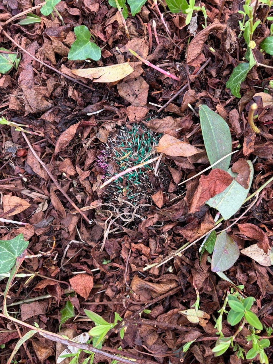 Spostando un piccolo mucchio di foglie, ecco Nina lì sotto. Mezza interrata.